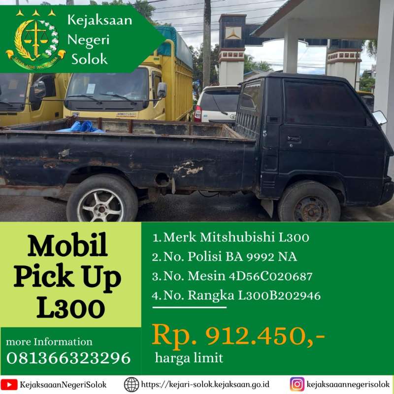 nomor rangka L300B202946 nomor mesin 4D56C020687 plat nomor BA 9992 NA. |