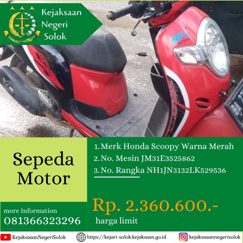 (satu) unit motor Honda Scoopy warna merah hitam BA 2794 PB dengan nomor